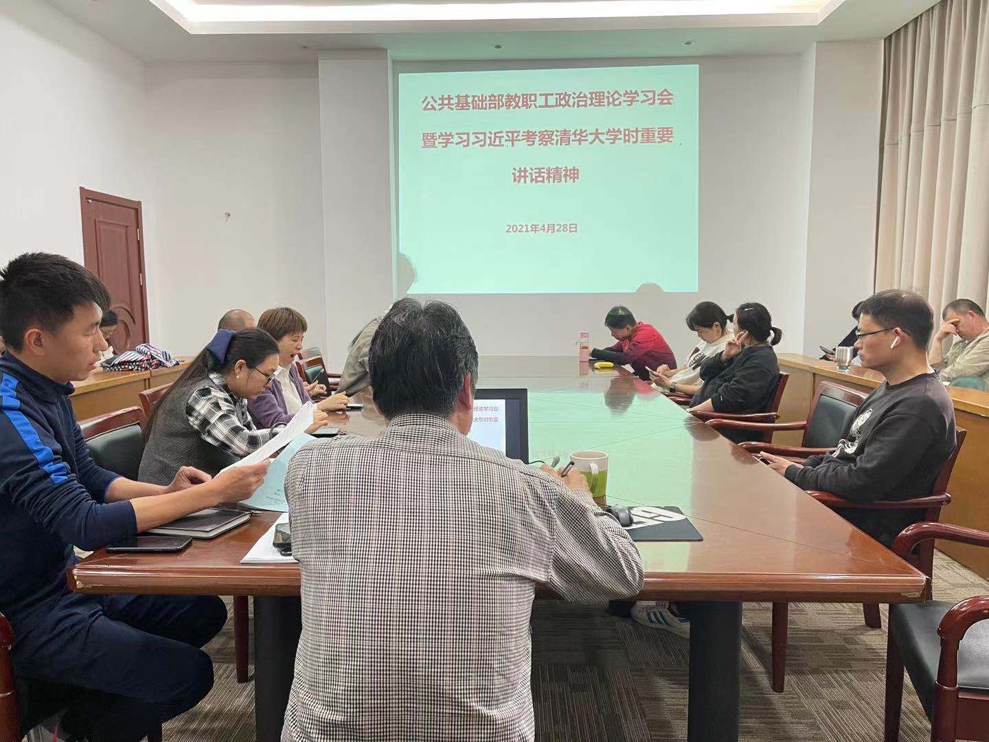 4月28日中午,公共基础部全体教职员工学习习近平考察清华大学时的重要讲话精神会在体育馆一楼会议室举行。