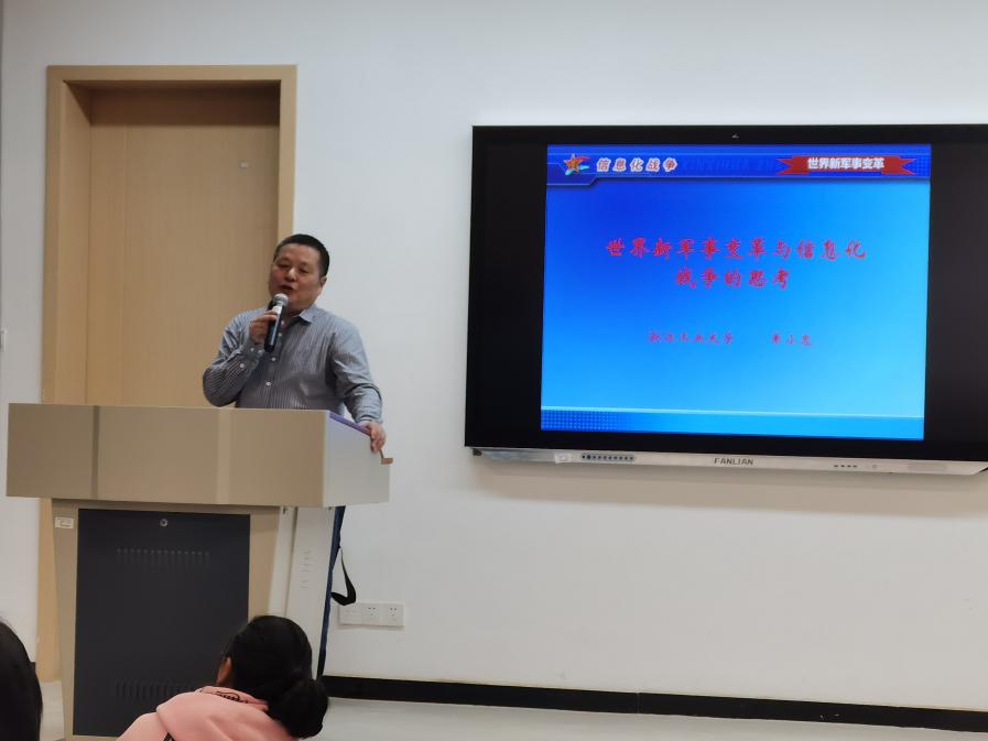 为不断丰富我校学生的国防军事知识,激发学生爱国热情,厚植家国情怀,不断提升民族自信心和自豪感,2022年10月19日晚上18:00-20:30,公共基础部组织举办军事理论讲座。浙江工业大学之江学院体育军训部部主任单小忠教授受邀担任主讲。全校200多位师生参加本次讲座。讲座由公共基础部室全志刚老师主持。