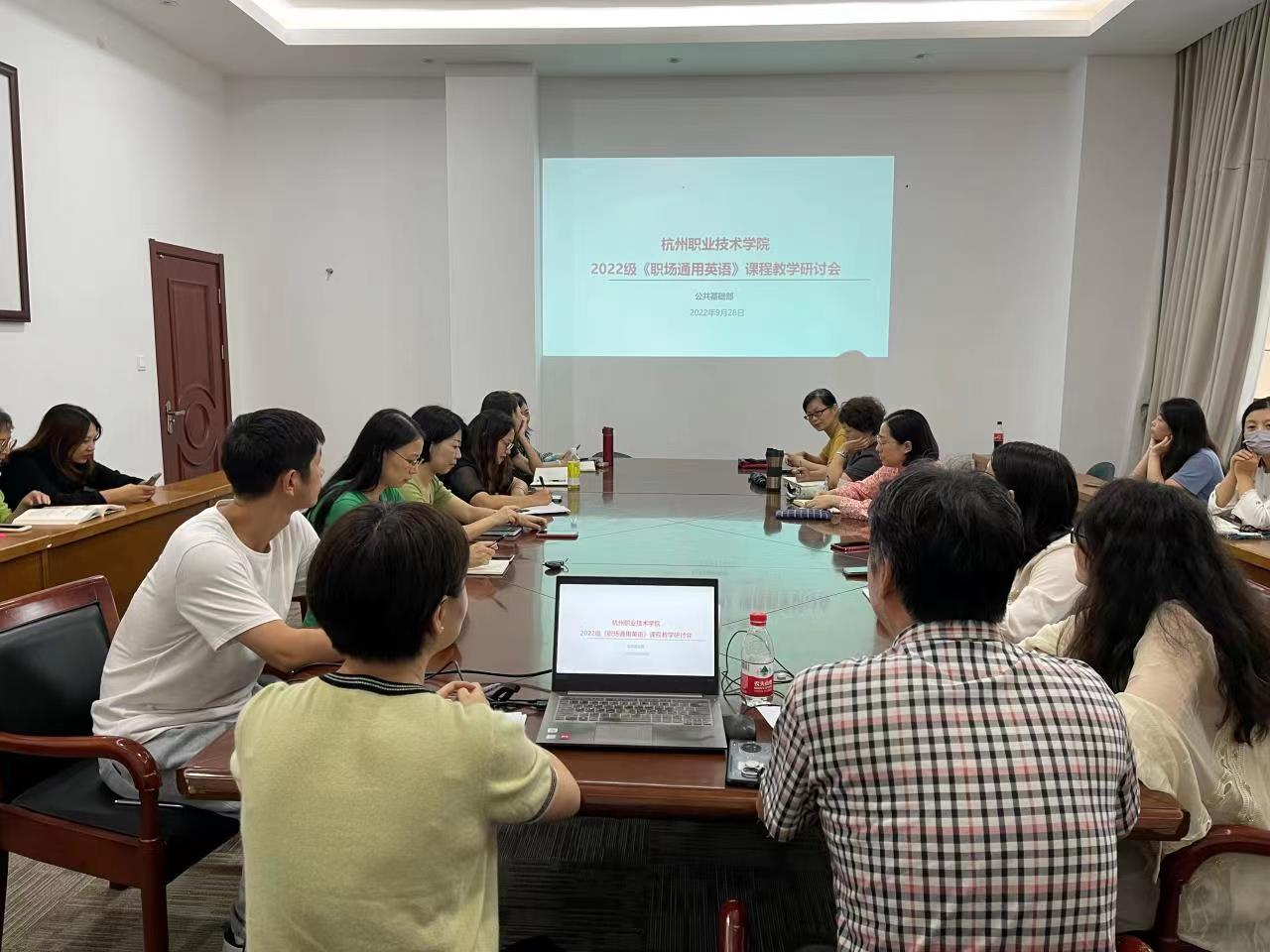 参照教育部《高等职业院校(专科)英语课程标准(2021)》的要求,我校为新生设置必修课程《职场通用英语》已一年有余。为更好的开展该课程的建设和教学准备工作,在专业建设指导处的大力支持下,公共基础部召集全校英语教师,于9月28日在体育馆1楼会议室召开了2022级《职场通用英语》课程教学研讨会。公共基础部主任黄允政、副主任朱尧平也参加了会议,由语言与人文素质教研室主任毛琦峥主持。