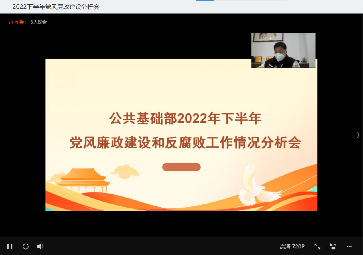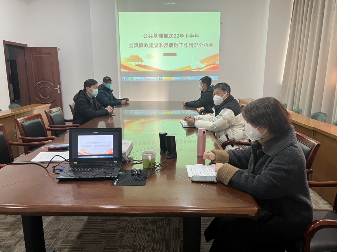 12月21日下午,公共基础部在体育馆会议室召开线上线下结合的党风廉政建设与反腐败工作情况分析会。校纪委委员邵立东、部门班子成员、党支部书记、两办主任、教研室主任、体育场馆中心负责人、特约监督员等参加会议。分析会由公共基础部党总支副书记黄允政主持。