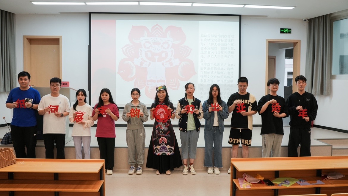 剪纸作为我国民间传统手工艺术,具有一千多年的历史。刘夏英以小兔纹样为例,详细讲解了太阳纹、月牙纹、柳叶纹、锯齿纹、云水纹在剪纸中的运用。民间剪纸善于把多种物象组合在一起,并产生出理想中的美好效果。刘夏英介绍,剪纸作品“见物寓意”,人们把约定俗成的形象组合起来表达自己追求美好的心愿。在讲解了暗口刀法、开口刀法等剪纸的基本刀法后,同学们都跃跃欲试。接着,在场的同学们利用所学的技法创作以亚运吉祥物“琮琮”、“宸宸”、“莲莲”为主题的剪纸。