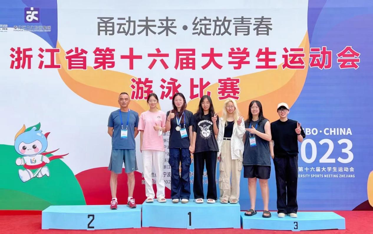 2023年6月2日至6月4日,浙江省第十六届大学生运动会游泳比赛在宁波奉化体育中心游泳馆举行。在公共基础部李曲波、刘可、沙洁老师的指导下,经过前期训练和比选,我校共派出12名运动员参赛。三天的比赛角逐中,运动员们在赛场拼尽全力,突破自我。获得总团体第二名,男子团体第二名,女子团体第三名的好成绩。