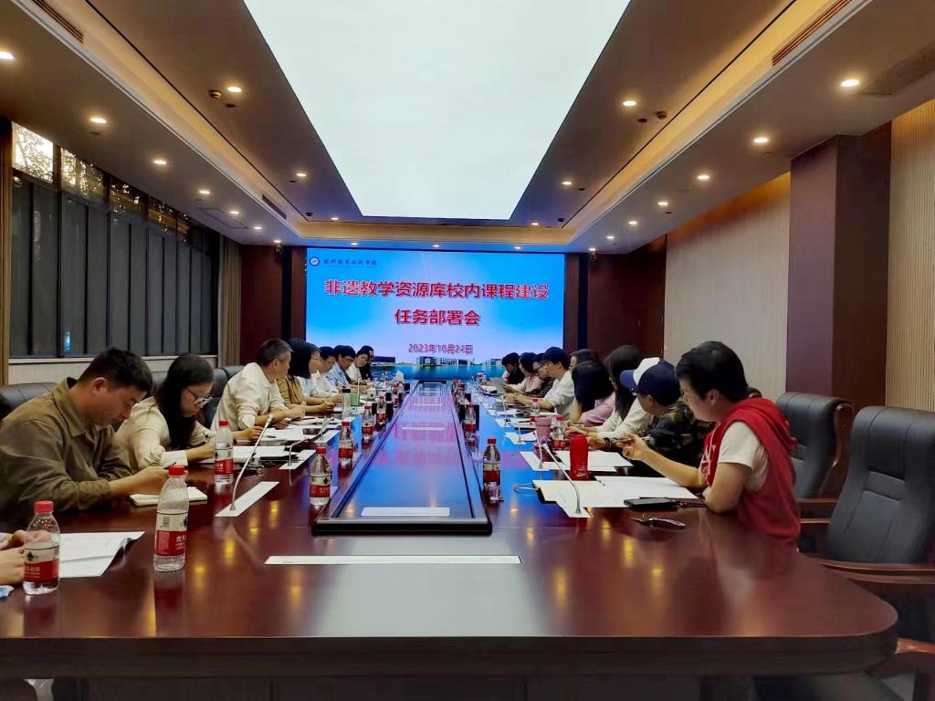 10月24日下午,非遗教学资源库校内课程建设任务部署会在行政楼129会议室召开。校党委书记陈文岳、副校长楼晓春,教务处负责人、非遗教学资源库建设专班负责人及成员、校内课程负责人、课程摄制方负责人等参加会议。