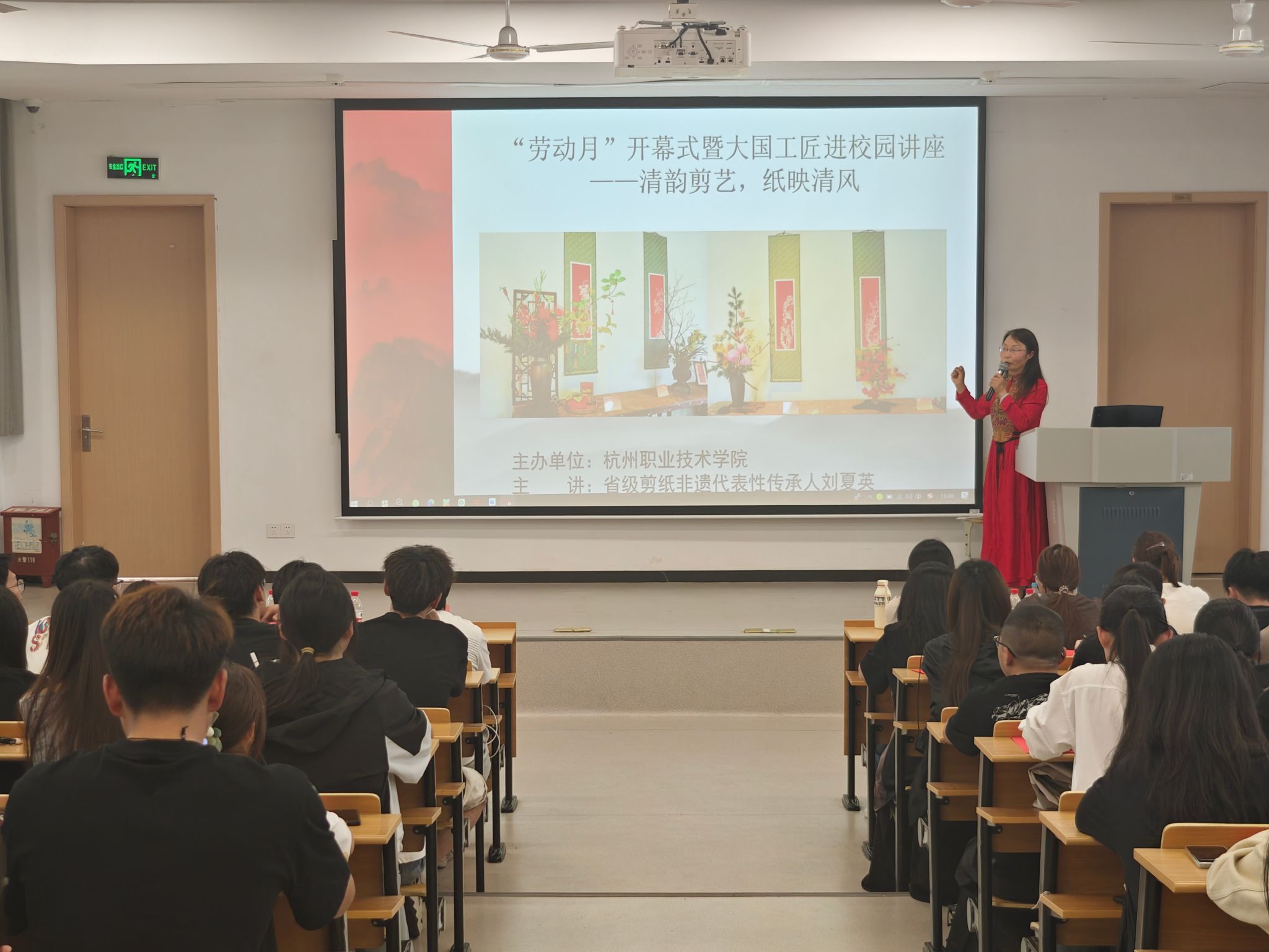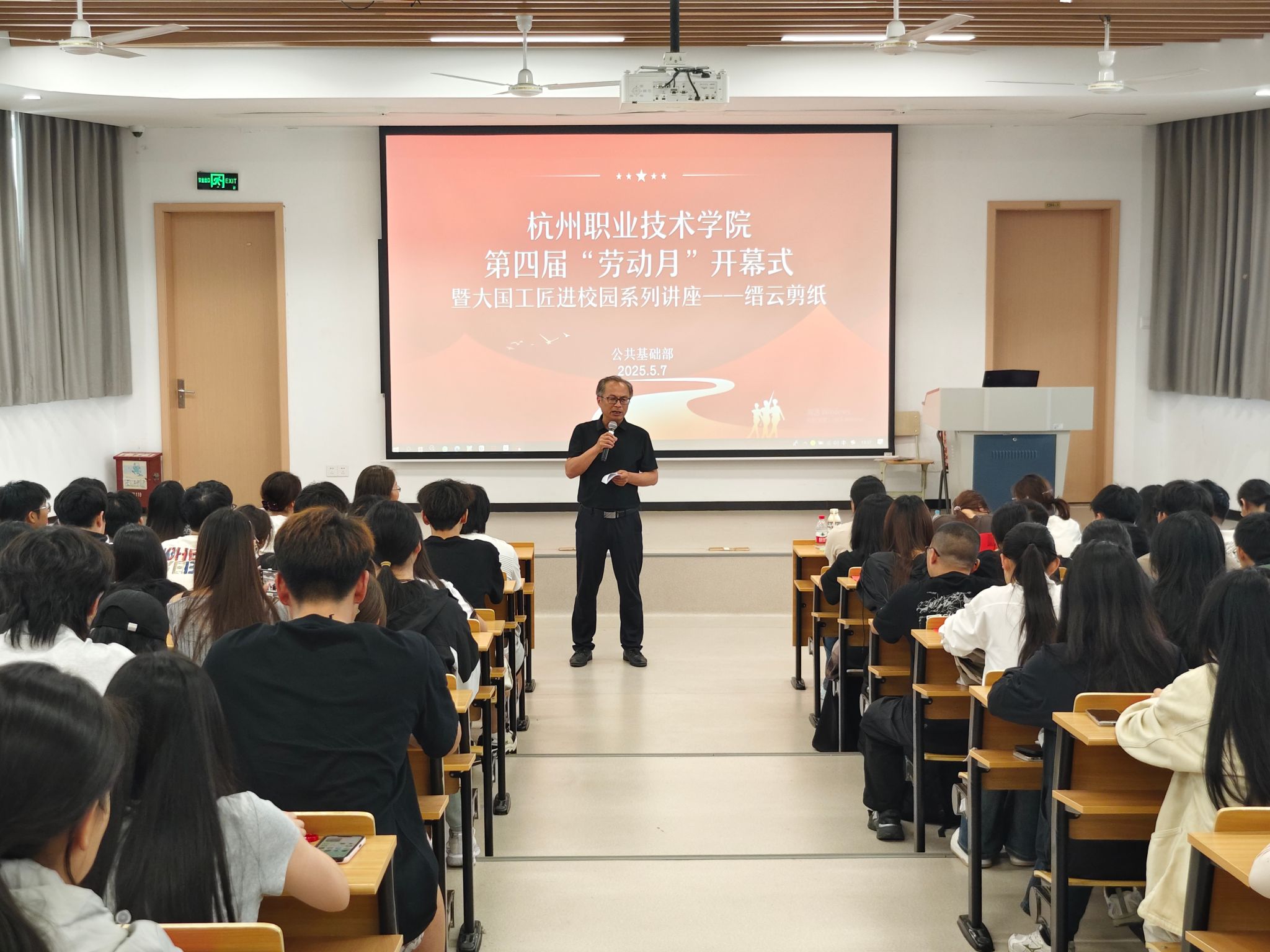 为深入贯彻落实新时代劳动教育理念,弘扬工匠精神,厚植劳动情怀,5月7日,公共基础部举办杭州职业技术学院第四届“劳动月”启动仪式暨大国工匠进校园专题讲座。活动以“匠耘传薪,耕承文脉”为主题,通过专家讲座、非遗技艺展示、非遗创作实践等形式,为师生呈现了一场理论与实践交融的精神盛宴。