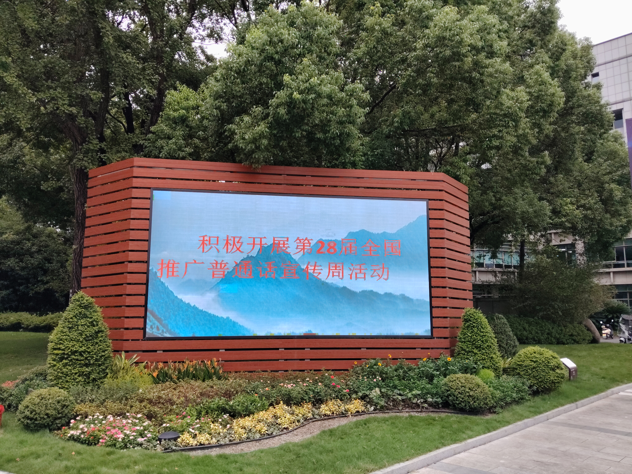 在校广播站,播音员们连续播送《中华人民共和国国家通用语言文字法》,用标准的普通话,把推动国家通用语言文字的规范化、标准化及其健康发展的国家意志传播到校园的每个角落。